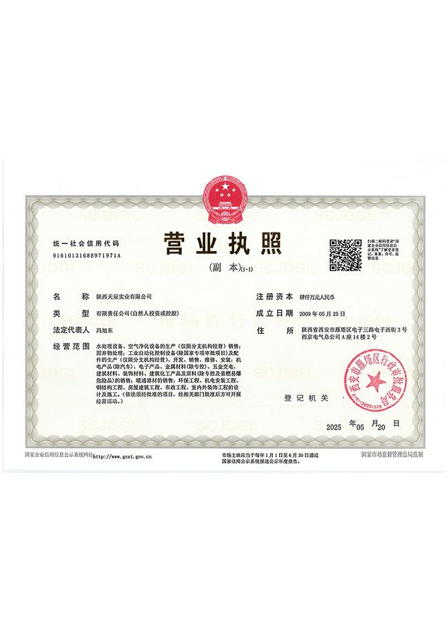陕西天辰实业有限公司,成立于2009年。实缴资本4000万元,是一家集科研开发、生产销售和技术服务为一体的专业水处理设备高新技术企业。公司总部位于西安市高新技术产业开发区,并在全国各地设有办事处。