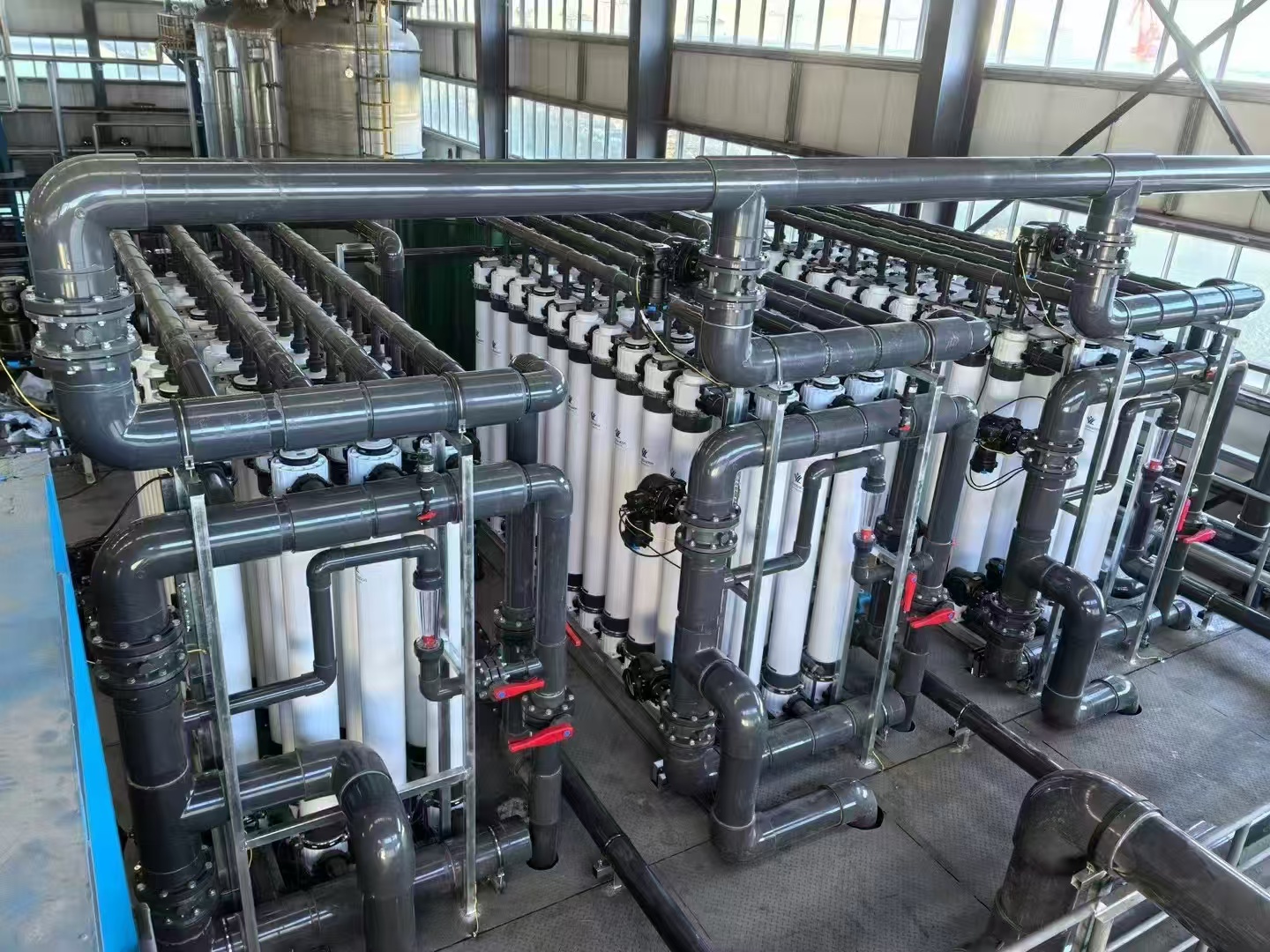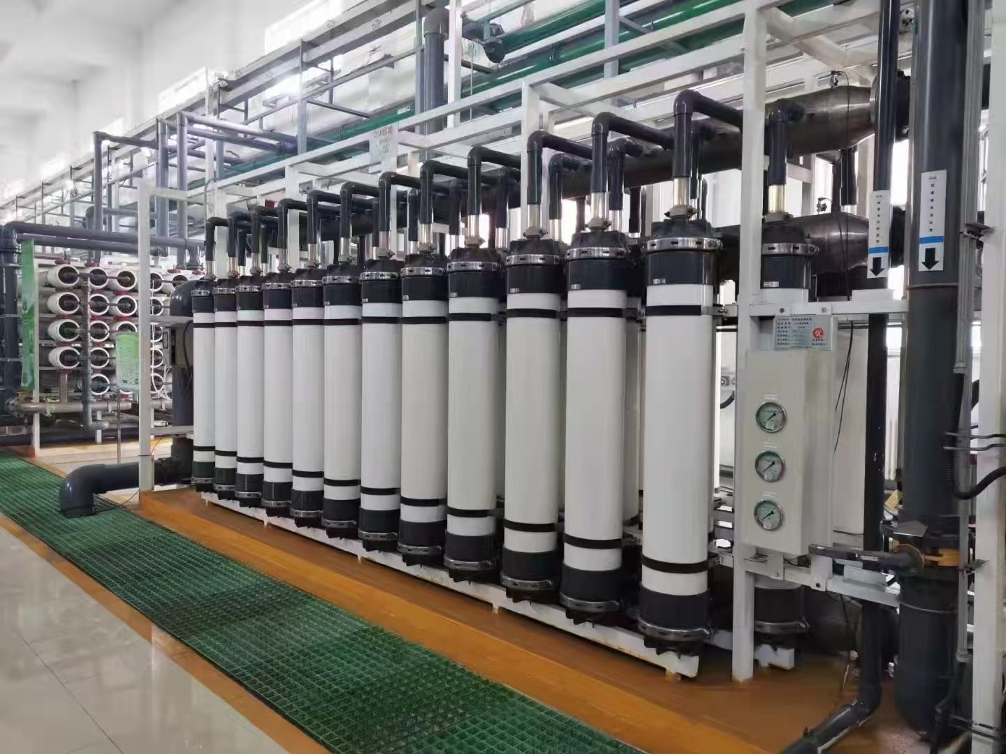 超滤是一种应用广泛的膜分离技术,主要用于溶液中物质大分子级别的分离,对深度降浊,澄清、除菌和大分子物质的分离、浓缩、分级、提纯等具有非常卓越的效果。超滤膜的孔径通常在 0.01-0.1 微米之间,能够有效截留水中的细菌、病毒、胶体、悬浮物、大分子有机物等杂质,过滤精度远高于传统的砂滤、活性炭过滤等工艺。例如,对于水中的大肠杆菌等细菌,去除率可达到 99% 以上,能显著提高水质安全性。